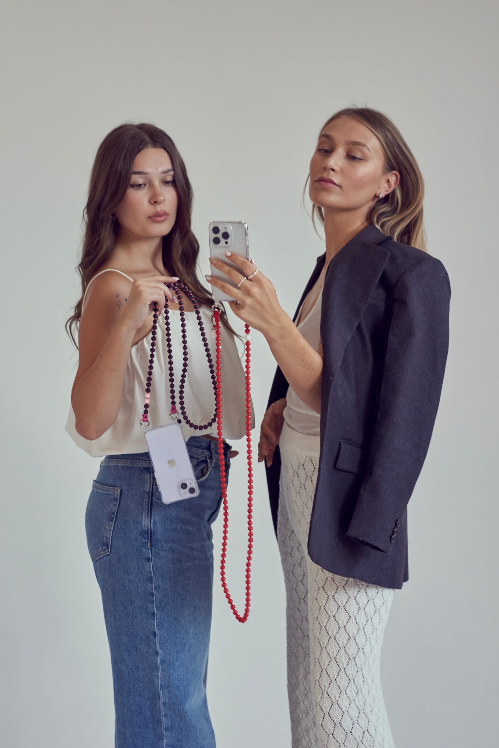 Mini korálkový popruh na telefon – hnědá & burgundy