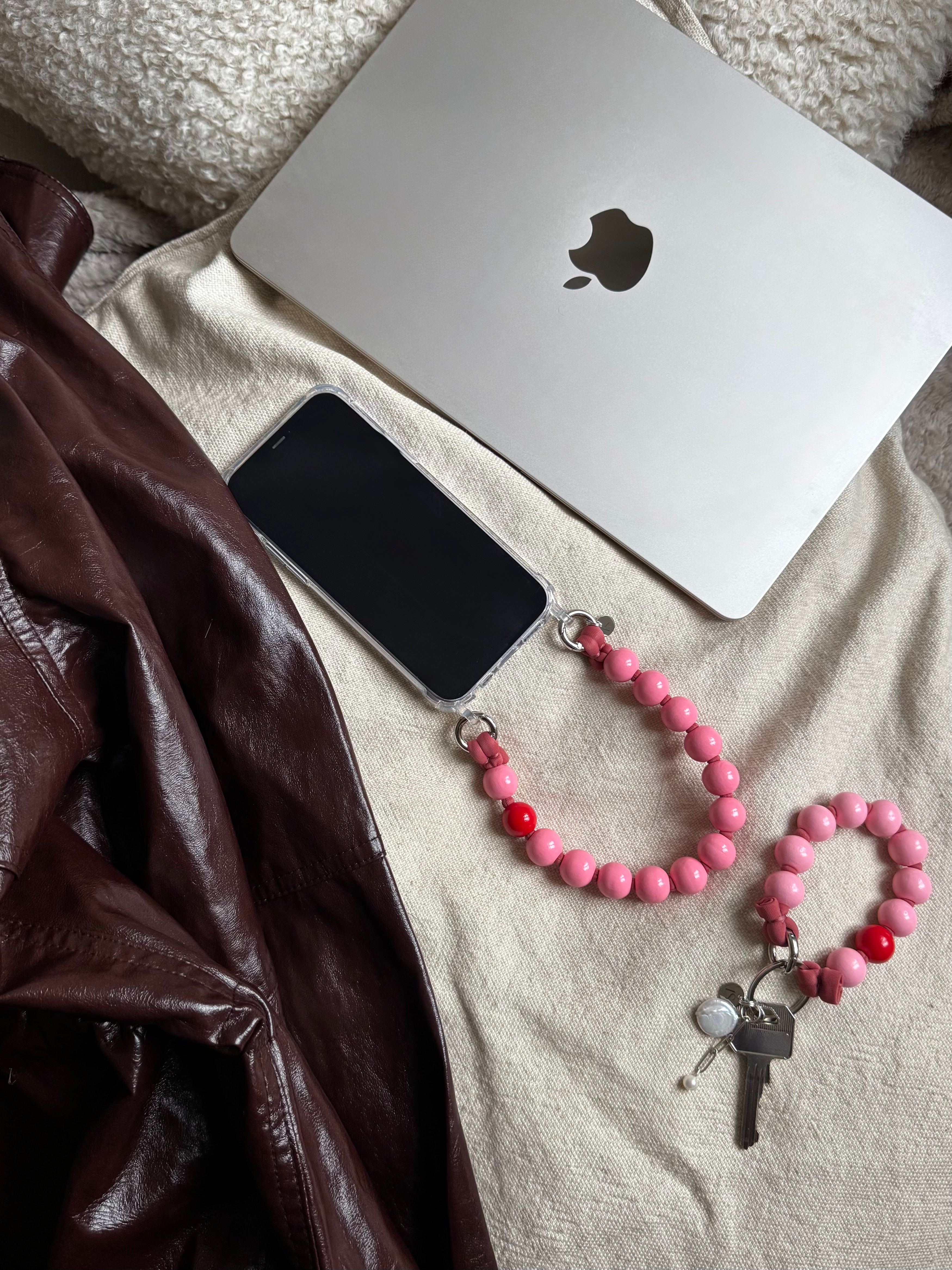 Mini korálkový popruh na telefon – Chocolate Cherry