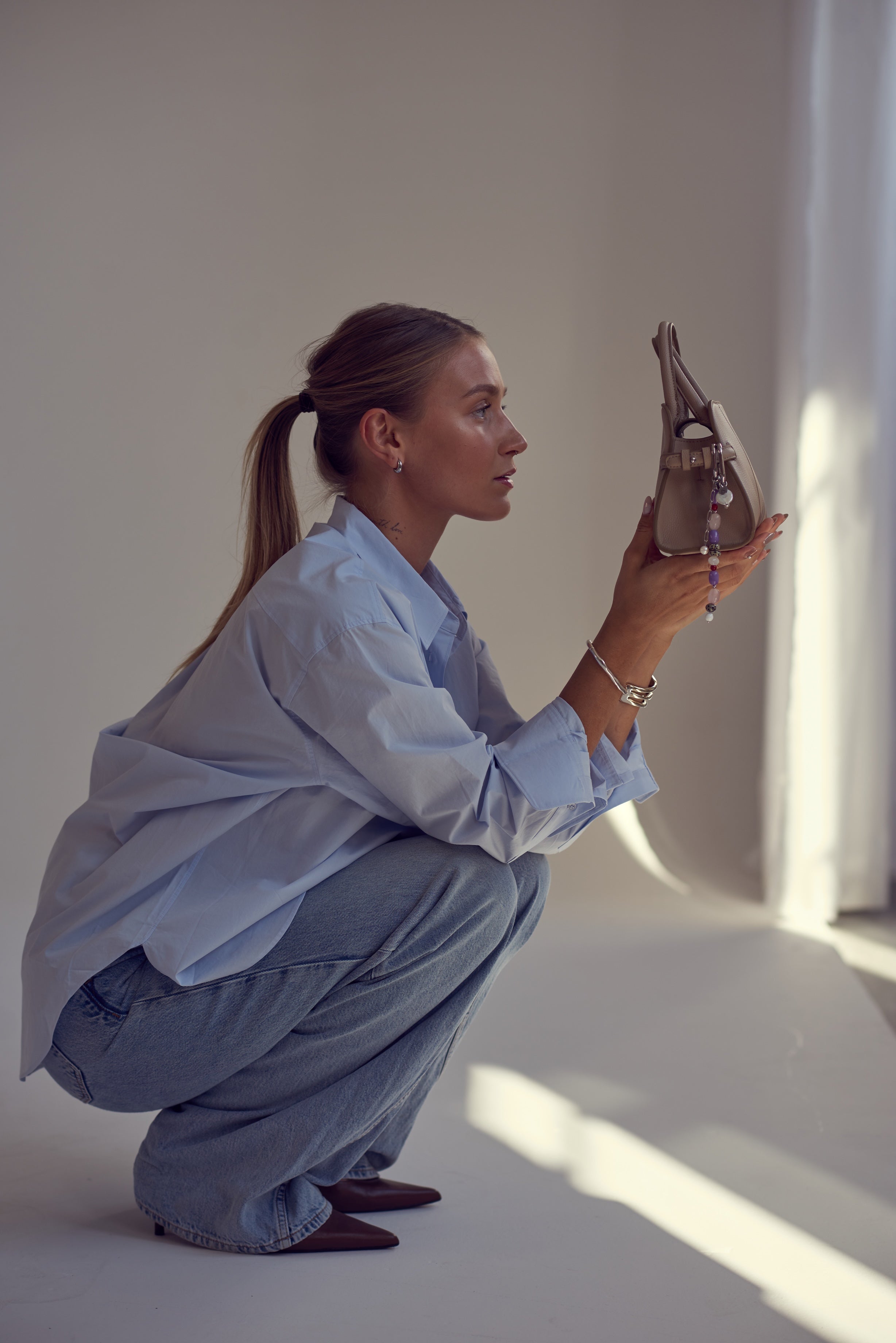Pokud máte svůj kryt se 2 úchyty, je možné si náš korálkový popruh přicvaknout pomocí 2 karabin. Popruh není funční k přicvaknutí na 1 úchyt ve středu krytu.